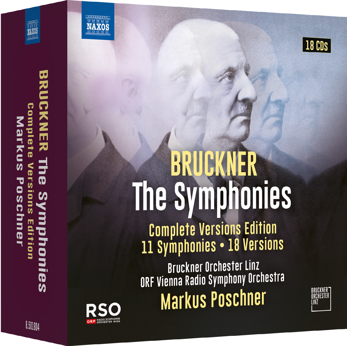 For those of us who are Bruckner lovers, and for those who are willing to love him, comes Markus Poscher's new complete set of Bruckner symphonies. This is more than a cycle of Symphonies 1-9, or even an expanded one with the “Student” Symphony in F and the “Die Nulte,” which is a complete but abortive sketch. This is Bruckner’s full, finished symphonic thoughts, with the existing multiple editions of each of the symphonies for which there is more than one existing performing (and performed) version: 11 symphonies on 18 CDs with multiple versions of Nos. 1-3, 4, and 8. There’s also a 174 page booklet with extensive musicological notes by Paul Hawkshaw.
